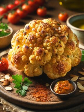 A kívül ropogós, belül omlós sült karfiol egy könnyed, mégis ízgazdag fogás, amely tökéletes főételként vagy különleges köretként is megállja a helyét.Ez az étel remek vegán alternatíva ünnepi alkalmakra, de egy hétköznapi vacsorát is különlegessé varázsol. Akár önmagában fogyasztva, akár köretként tálalva, garantáltan elnyeri mindenki tetszését!