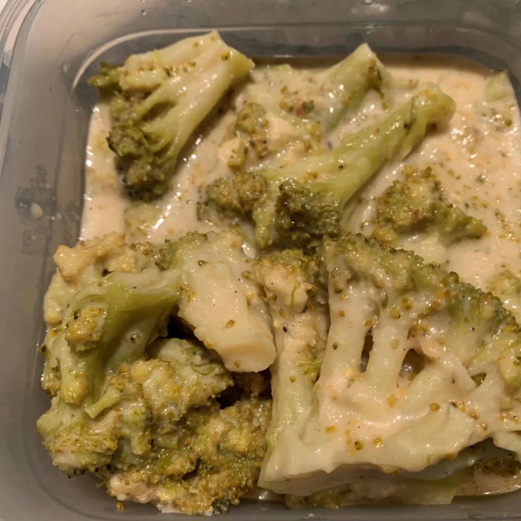 A blansírozott brokkolit egy tűzálló tálba tesszük, ráöntjük a besamelt, összeforgatjuk.