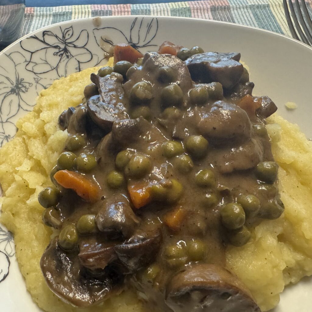 A burgonyapüré lágy és krémes, amely tökéletes kontrasztot alkot a sűrű, ragacsos gombaraguval. A konzerv kókusztej gazdag, selymes állagot ad a pürének, míg a szerecsendió és a frissen őrölt bors mélységet és fűszerességet kölcsönöz neki.