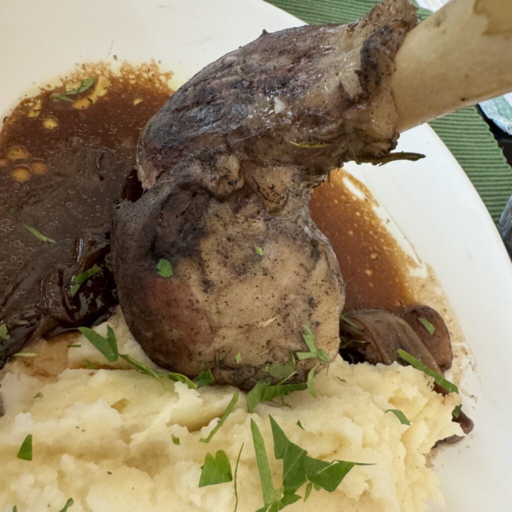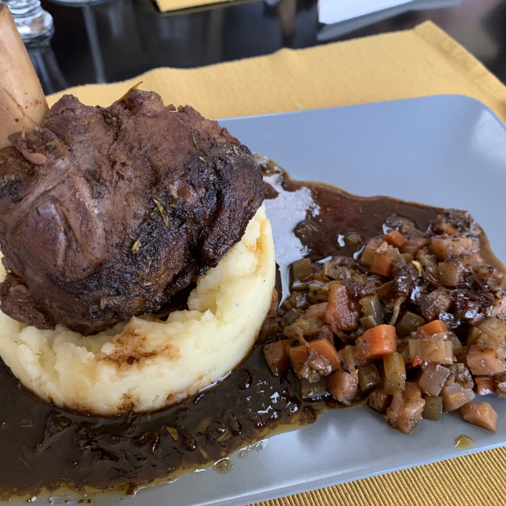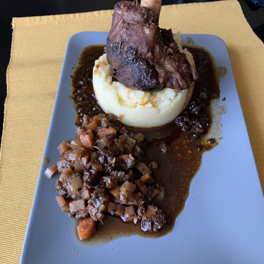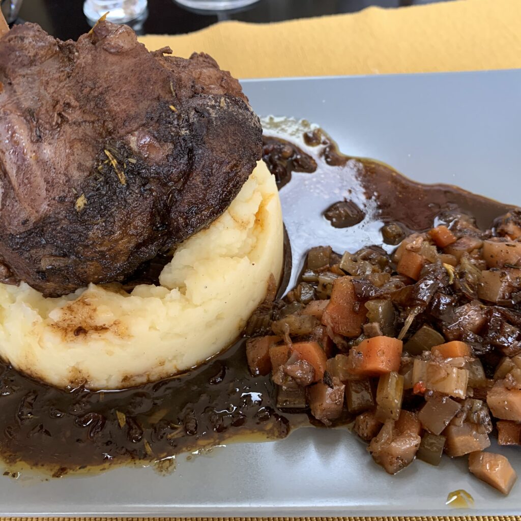 Kulcsszavak: báránycsülök, lassú párolás, ünnepi étel, gyökérzöldség, balzsamecet, jus, salottahagyma, burgonyapüré